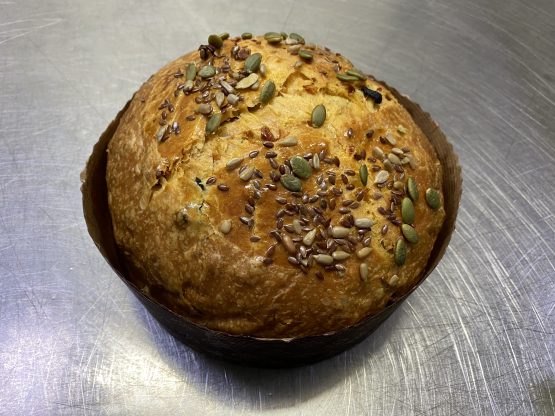 ULTIMA NOVITA’ IN CASA GIULIO: PANETTONE ALL’OLIO D’OLIVA, CON VERDURE DI CAMPO, UOVA DI GALLINA E LIEVITO MADRE.