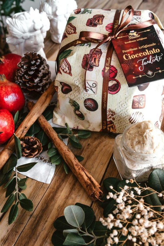 Il nostro panettone artigianale al cioccolato è per eccellenza la punta di diamante delle festifità natalizie; un esplosione di gusto, colore, profumi ed emozioni. Preparato con lievito madre vivo, senza conservanti, utilizzando farine pregiate, burro e uova, cioccolato di altissima qualità. Per noi natale vuol dire PANETTONE !